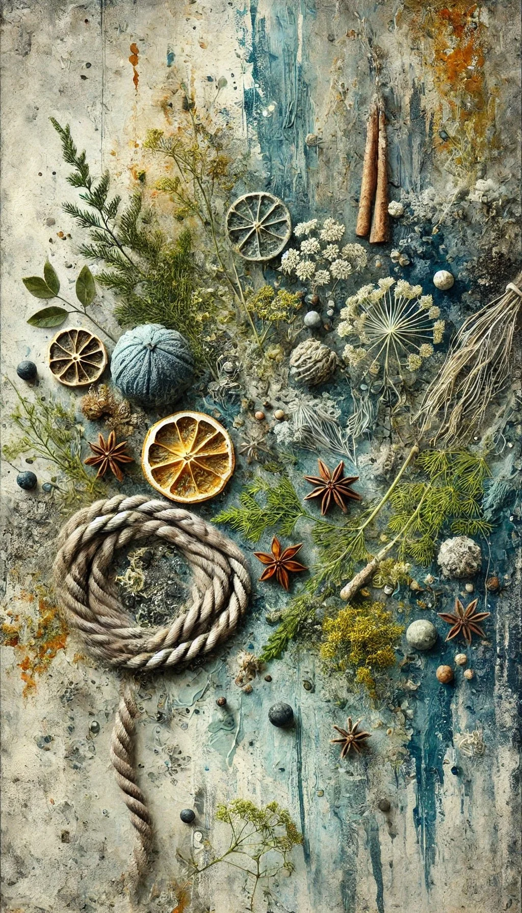 Bright citrus zest leads, carried on a coastal breeze. A faint saline mist lifts the aromatic herbs: dill fronds, coriander seed, and juniper, underpinned by a soft marine depth from the kelp. A touch of star anise lingers at the edge — barely there, but warming.